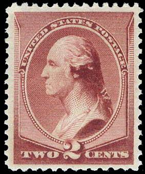 1883, 2¢ Washington, red brown (Scott 210), intense color, o.g., never hinged, Extremely Fine, with 2023 Crowe certificate graded XF 90. Scott $135. Scott Stamp Values $575. Estimate $350 - 500. Scott $135 Suggested Bid $350-500 (Image)