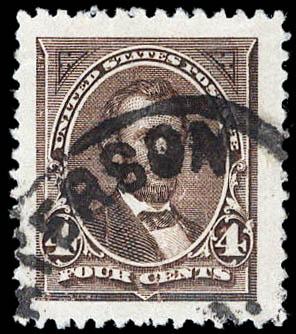 1890, 4¢ Lincoln, dark brown (Scott 222), a jumbo margins gem! black cancel, Extremely Fine to Superb. Estimate $50 - 75. Suggested Bid $50-75 (Image)