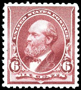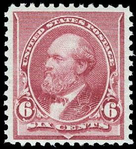 1890, 6¢ Garfield, brown red (Scott 224), exceptionally well centered and with brilliant fresh color, o.g., never hinged, Extremely Fine, with 2010 P.S.E. certificate graded XF 90. Scott $180. SMQ $600. Estimate $400 - 600. Scott $180 Suggested Bid $400-600 (Image)