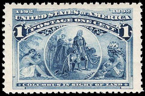 1893, 1¢ Columbian (Scott 230), o.g., never hinged, Very Fine, with 2006 P.S.E. certificate graded VF 80J. SMQ $40. Estimate $30 - 40. Suggested Bid $30-40 (Image)