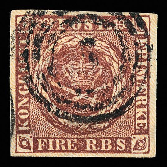 1851, First Issue, 2rs blue, 2nd (Thiele) printing (Scott 1), exceptional, beautifully balanced margins and neat Copenhagen "1" cancel; minute thin speck, Extremely Fine appearance. Michel 2 II. Facit 1 II. Scott $1,000. (Image)