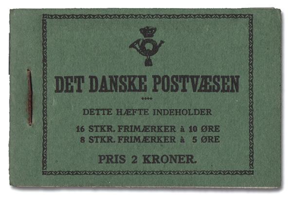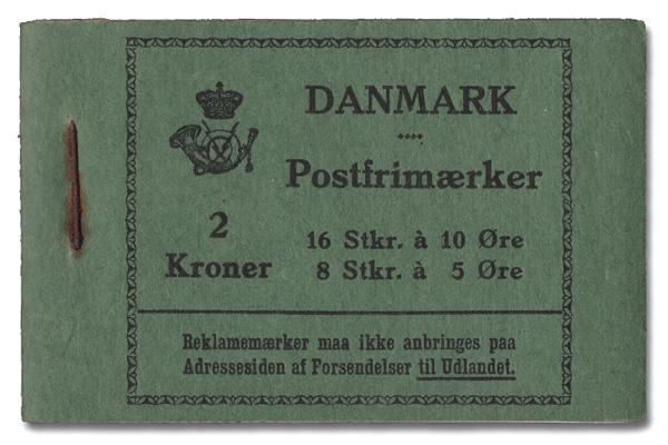 1921, 2kr Rundskuedagen Pottery booklet complete (Scott 89b, 94b), two 5ø panes and four 10ø panes, each with two advertising labels, o.g., never hinged, exceptionally fresh; though with a slightly rusty staple, Very Fine. Michel 118 var. Facit HRE 6. Facit SKr 6,000 ($580). (Image)