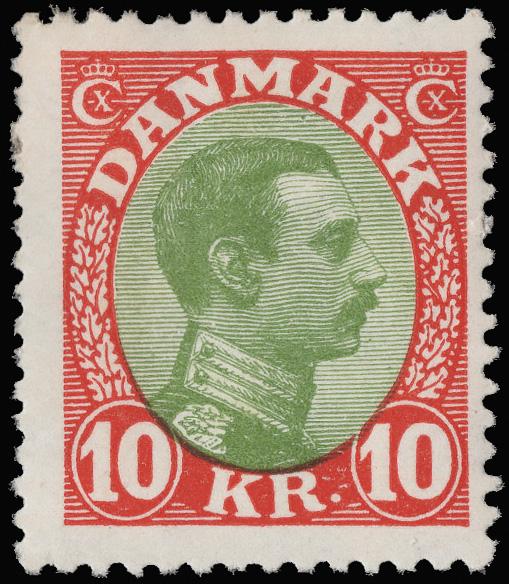 1913-28, King Christian X, 5ø to 10kr plus 1kr-10kr engraved (Scott 97-131, 132-134), set of 38, including both Facit-listed types of the typographed 1kr (Facit +600SKr), o.g., hinge remnants, bright fresh colors; #100 thin & 127 rounded corner (cat. $21), Fine to Very Fine. Scott $1,380. (Image)