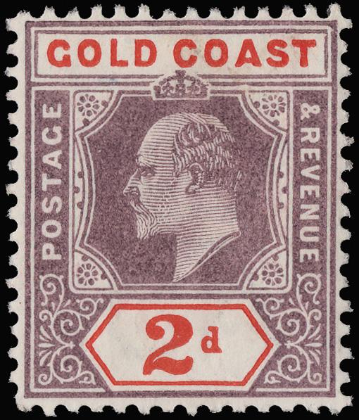 1902, King Edward VII, 2d dull purple & orange red, damaged frame & crown (Scott 40 var.), Crown CA watermark, o.g., lightly hinged, fresh and well centered, Very Fine and rare. This variety is unlisted on the 2d Crown CA watermark. SG 40 var. (Image)