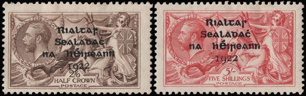 1922, Thom Provisional Govt. overprint on 2s6d & 5s "Seahorses" (Scott 36-37), o.g., Very Fine. SG 44-45. Scott $590. (Image)
