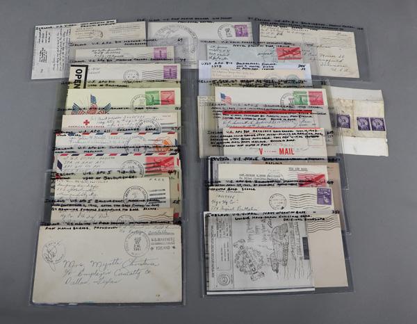 US Bases in Iceland Military Postal History, 1941-45, 22 scarce pieces of Iceland WWII postal history in individual sleeves; each neatly annoted with extensive notes and retail values ready to be put to work; includes APO 5, 810, 610, 860, 611, and 612; includes V-Mail, Provisional cancel, Red Cross corner card, censor tape, Patriotics, and more; much to discover, Fine to Very Fine. Shipping charges apply - weight 1 lbs. (PDF for this Lot) (Image)