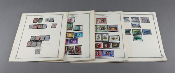 Montserrat, Leeward Islands Collection 1876-1988, 37 Scott album pages of mint (ok, 2 used) singles, sets, se-tenants, and souvenir sheets in black mounts; includes #1, 2, 4-8, 10, 12-18, 22-28, 31, 31A-37, 39, 40, 42-74, 75-82, 92-99, 92a-101a, 114-126, 128-142, 159-175, 159a-168a, 212-219, 231-243A, 252-273, 274-295, and much more, Fine to Very Fine. Shipping charges apply - weight 1.5 lbs. (Video for this lot) (Image)