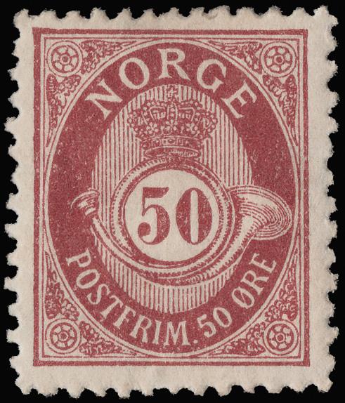 1893-1908, 1ø-50ø Post Horns, "NORGE" in Roman capitals, perf 13½x12½ (Scott 47a-57a), an exceptionally fresh set, o.g.; 10ø with a couple nibbed perfs, otherwise Very Fine. Scott $805. (Image)