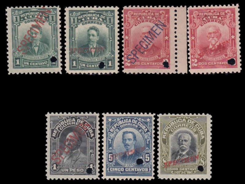 CUBA, 1911-13, PERSONALITIES SPECIMEN SET NH, #247S-252S, with variety of 1c & 2c, fresh and fine-very fine. (Image)