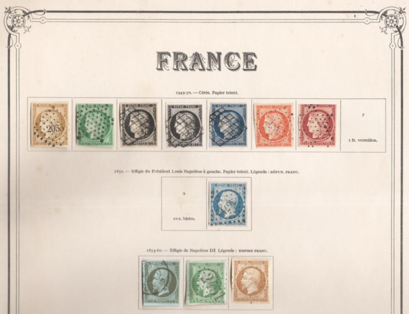 FRANCE WONDERFUL CLASSIC COLLECTION 1849-1900 ON OVERSIZED YVERT PAGES CV $9,600, replete with sound and attractive stamps, starting off with the first issue incl. #1 full margins sound signed by Scheller, #2 three full margins, just in at bottom, #3, #3a, #6, #7, #9 three full margins, in at top, #11, #12 signed Scheller, #13, #17, #19, #21 three large margins, in at bottom, signed Scheller, #22*, #30*, #31-36, #37, 38* horiz. crease, #39-48 full margins, all signed by Scheller, 20c type I particularly nice, #64, #66-70, #73-76, #83, #96, an excellent opportunity to acquire quality French classics, cat. $9,600.00, Yvert €13,100.00 (Image)