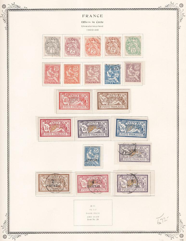 FRANCE, OFFICES IN CRETE, ATTRACTIVE MINT & USED ON SCOTT PAGE CV$670, incl. nos.1-13* (1c, 3c,25c used), 16-19 used (incl. extra #19), nice condition, fine-very fine, cat. $670.00 (Image)