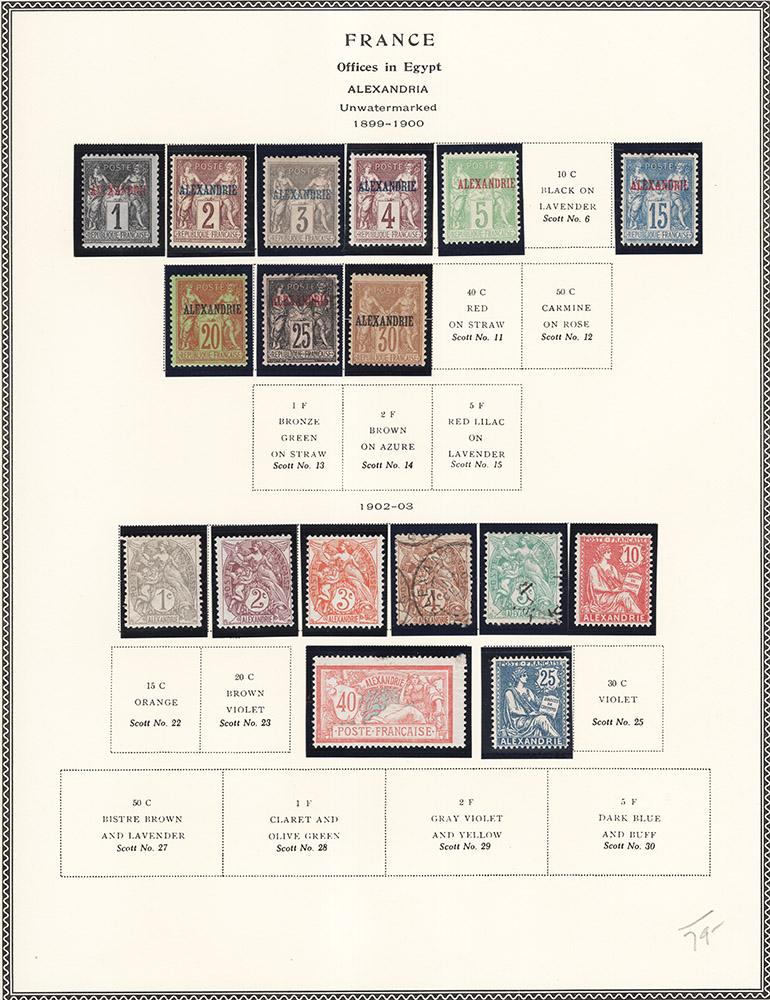 FRANCE OFFICES IN EGYPT - ALEXANDRIA & PORT SAID, MOSTLY MINT ON SCOTT PAGES CV $730, very attractive group, fine-very fine, cat. $734.00 (Image)