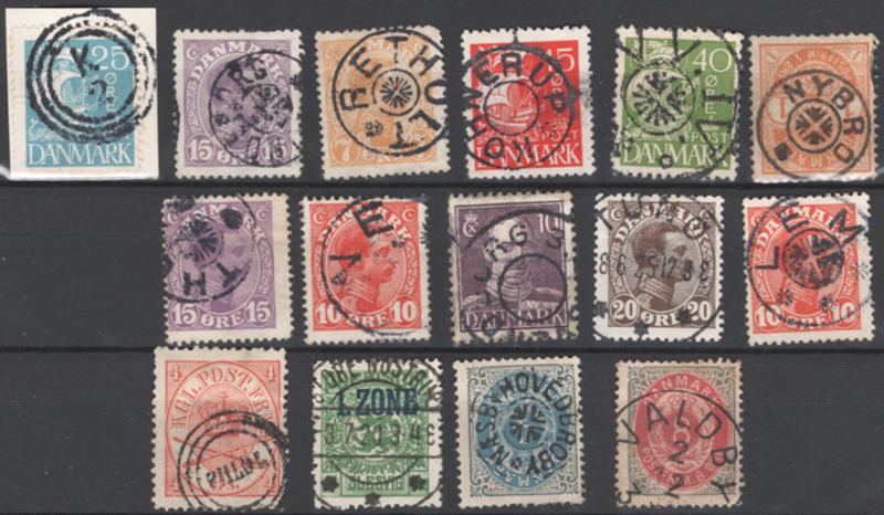 DENMARK CANCELLATION COLLECTION ON STOCKCARDS, incl. Star cancels, overall fine-very fine (Image)