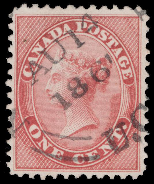 CANADA, 1859, 1c ROSE USED, #14, well-centered with neat date cancel, extremely fine, cat. $90.00 (Image)