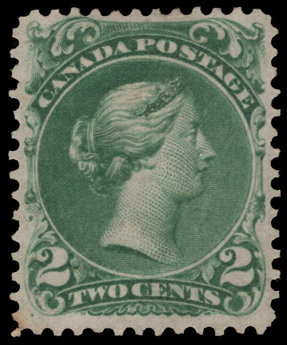 CANADA, 1868, 2c GREEN UNUSED, #24, fresh and well-centered, without gum, very fine, cat. $800.00 as no gum (Image)
