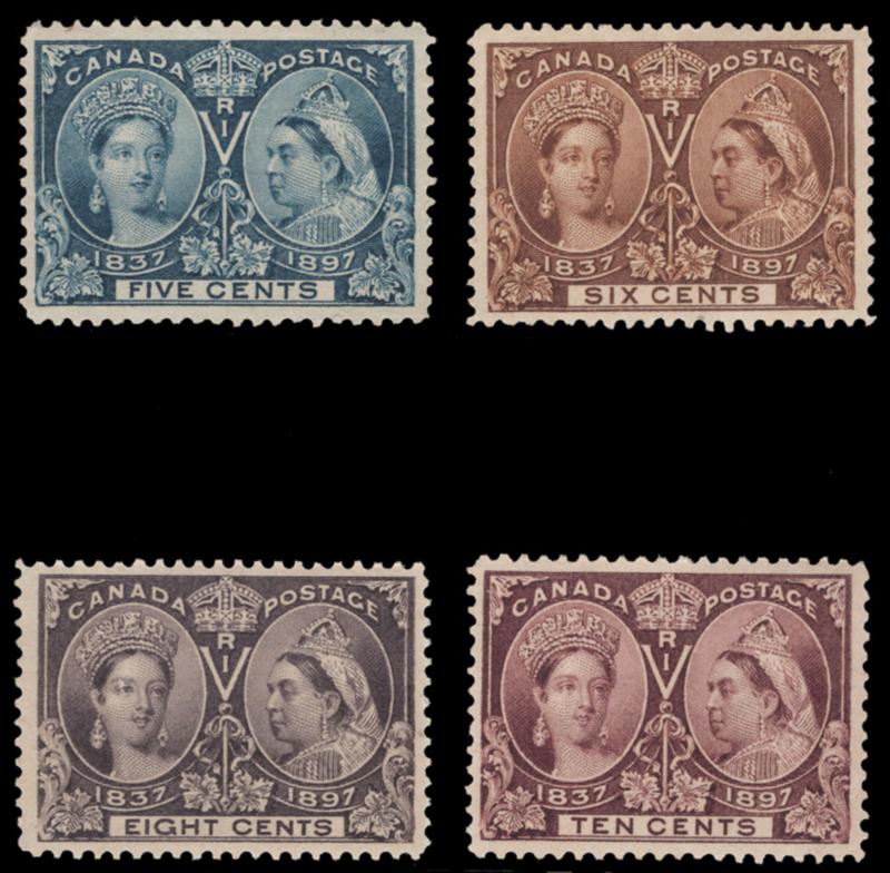 CANADA, 1897, 5c-10c JUBILEE ISSUE NH, #54-57, beautifully centered, minor natural gum bends, very fine - extremely fine, cat. $1,575.00 (Image)