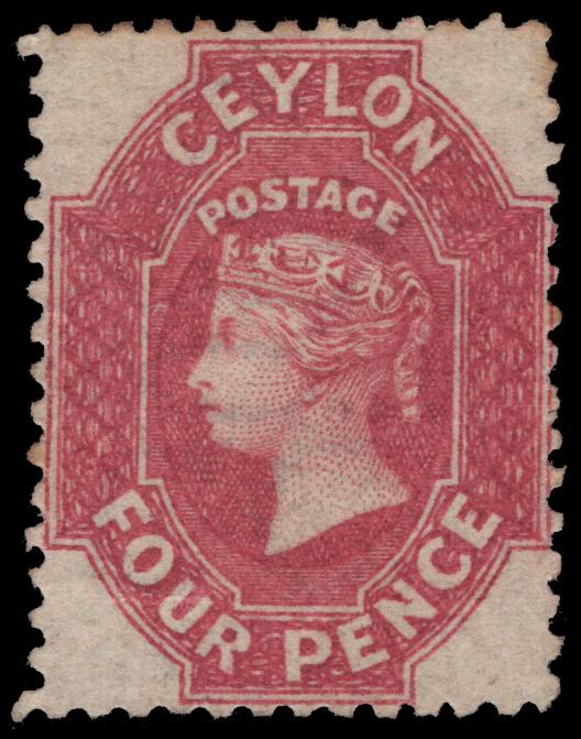 CEYLON, 1863, 4p ROSE PERF 12½ UNUSED, #50, striking bright shade, no gum, very fine, cat. $550.00 (Image)