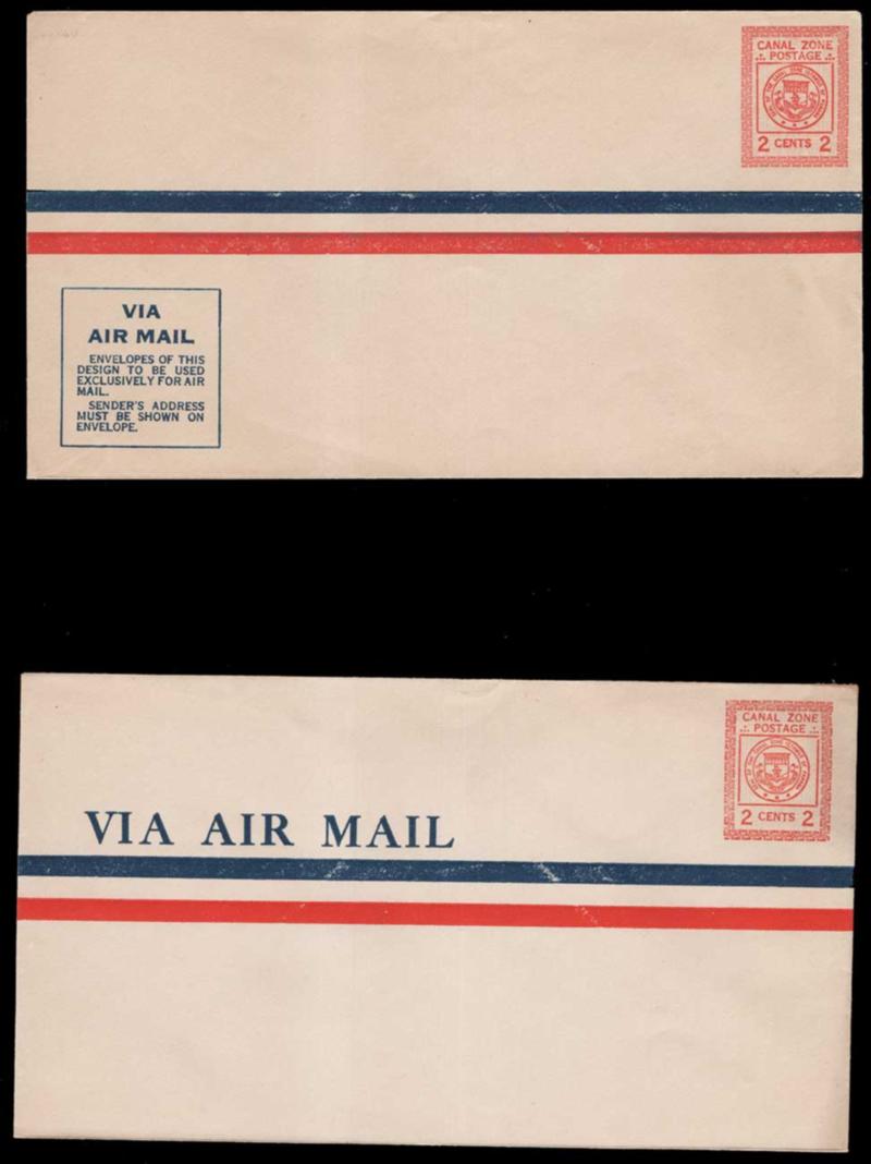 CANAL ZONE, 1928-29, 2c RED AIR POST POSTAL STATIONERY ENTIRES MINT, #UC1 (two, both sizes), UC2, very fine, cat. $335.00 (Image)