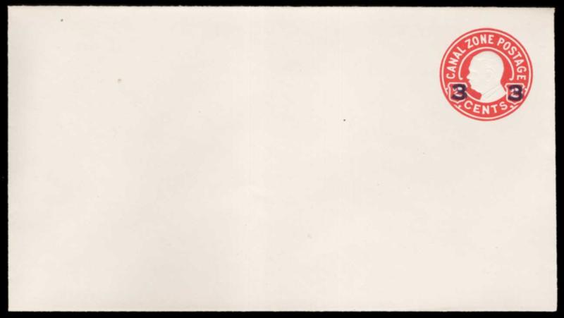 CANAL ZONE, 1934, 3c on 2c RED - SURCHARGE WITH SERIFS - MINT, #U15, fresh and very fine, cat. $250.00 (Image)