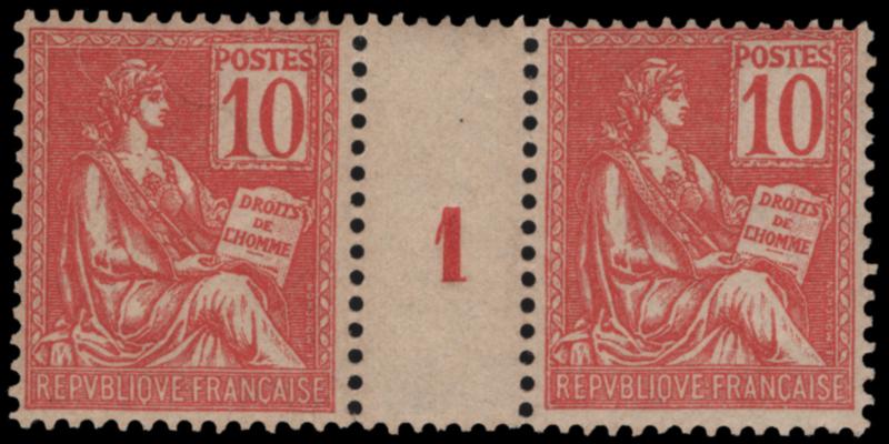 FRANCE, 1925, 5fr CARMINE BROKEN VALUE TABLET FRAME LINE NH, #226b var., very fine, cat. Yvert #216b @ €330.00 (Image)