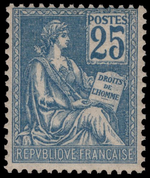 FRANCE, 1900, 25c BLUE MINT NEVER HINGED, #119, fresh, fine-very fine, cat. $340.00, Yvert #118 @ €650.00 (Image)