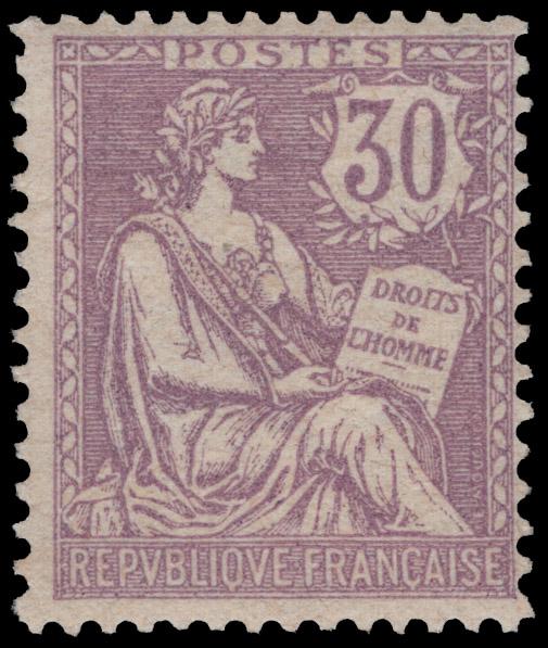 FRANCE, 1902, 30c LILAC MINT NEVER HINGED, #137, fresh, fine-very fine, signed Calves, cat. $575.00, Yvert #128.00 @ €1,020.00 (Image)