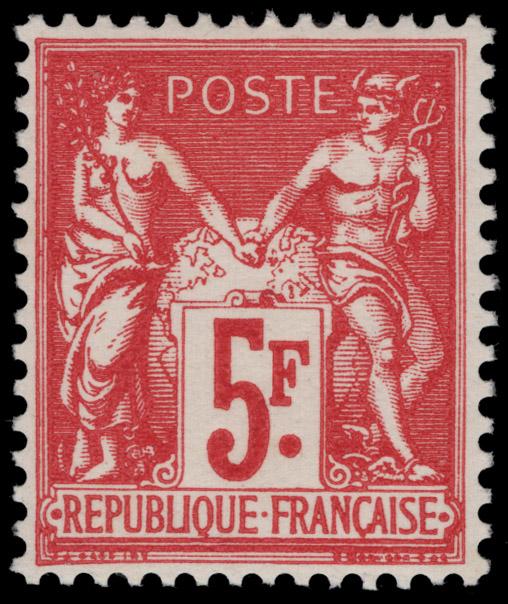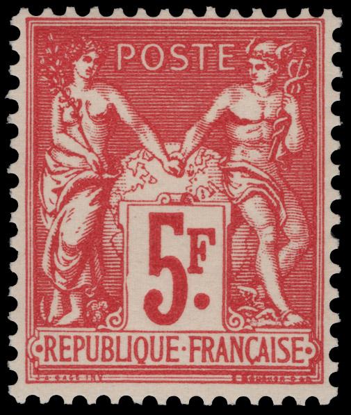 FRANCE, 1925, 5fr CARMINE NH, #226b, very fine, cat. $225.00, Yvert #216 @ €300.00 (Image)
