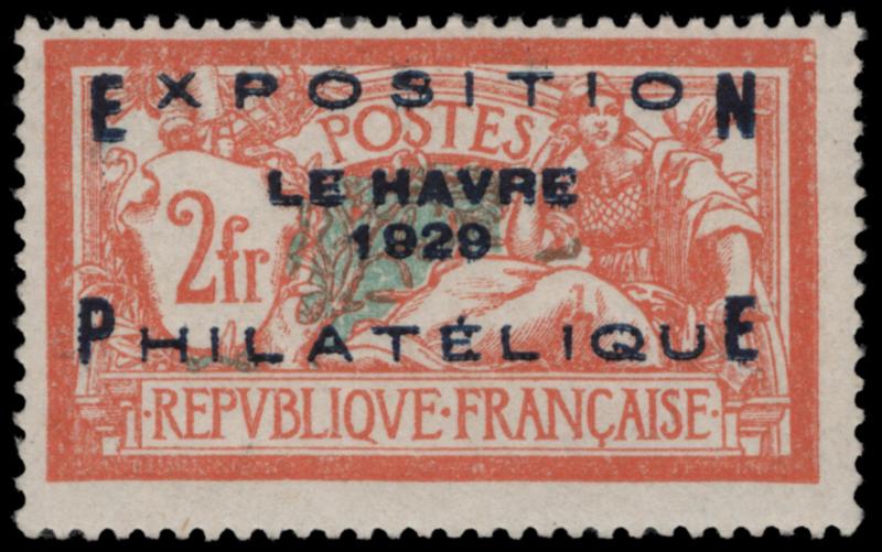 FRANCE, 1929, 2fr LE HAVRE PHILATELIC EXHIBITION NH, #245, fresh, mint never hinged, fine-very fine, signed Brun, cat. $1,325.00, Yvert #257A @ €1.650.00 (Image)