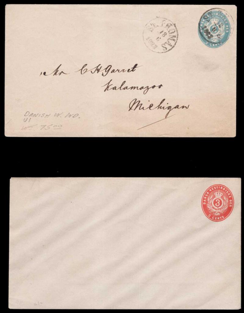DANISH WEST INDIES POSTAL STATIONERY, attractive group incl. nos U1 used, U2, U2a, UX6 used, UX11-12, UX13, UY9-Uy10, very fine, cat. $400.00 (Image)