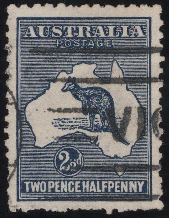 AUSTRALIA, 1915, 2½p DARK BLUE - "1" OF FRACTION OMITTED ERROR - USED, #46a, well-centered, machine cancel, uneven perfs at the bottom, still a very fine example of this major rarity, 2015 Royal Philatelic Society of Victoria cert., cat. $30,000.00, Gibbons #36ba @ £35,000.00 (Image)