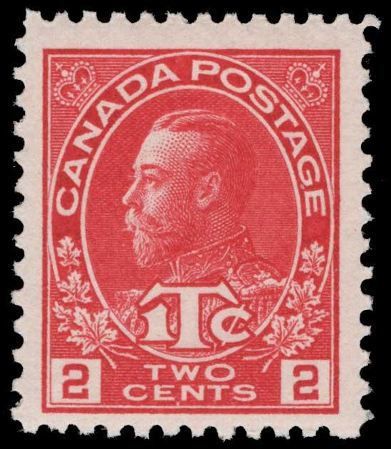 CANADA, 1916, 2c CARMINE WAR TAX TYPE II MINT NEVER HINGED, #MR3a, fresh, fine-very fine, with photocopy of 2018 Richard Gratton cert for block of which this is the top left stamp, cat. $825.00 (Image)