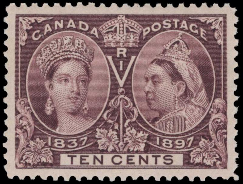 CANADA, 1897, 10c BROWN VIOLET MINT NEVER HINGED, #57, exceptionally well-centered amidst exceedingly wide margins, extremely fine - superb, with 2012 PF cert. graded '95 XQ (= Extraordinary Quality), SMQ $900.00 (Image)