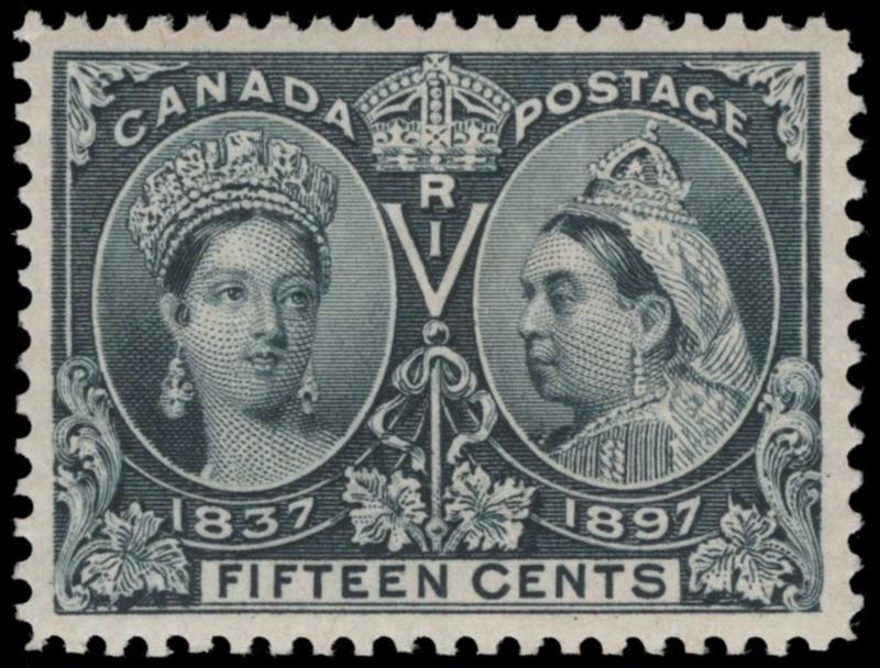 CANADA, 1897, 15c STEEL BLUE JUBILEE MINT NEVER HINGED GRADED '95', #58, gorgeous single in virtually perfect centering, distinct impression in a deep shade, extremely fine - superb, with 2014 PF cert. and 2026 PSE cert., both graded '95', unpriced in this exalting grade (Image)