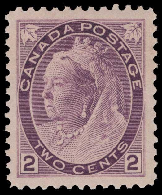CANADA, 1898, 2c VIOLET NH GRADED '90', #76, beautifully centered, extremely fine, with 2010 Gratton cert. and 2026 PSE cert graded '90', SMQ $115.00 (Image)