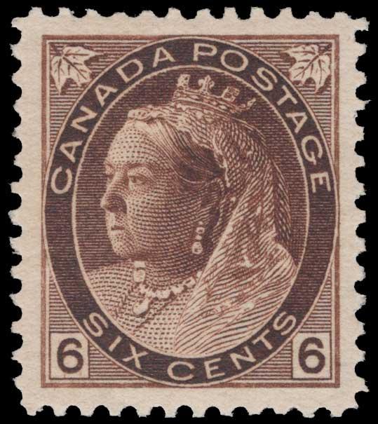 CANADA, 1898, 6c BROWN MINT NEVER HINGED GRADED '95', #80, extraordinary well-centered single with wide margins all around, deep impression with an almost three-dimensional look, extremely fine - superb, with 2014 and 2021 PF certs., latter graded '95', SMQ $1,150.00 (Image)