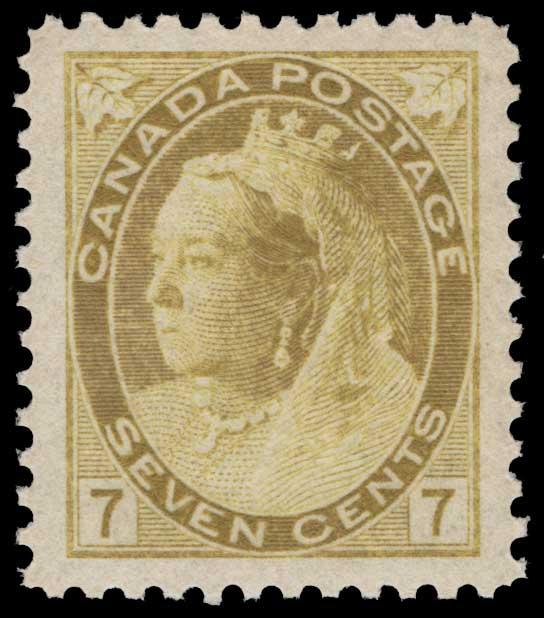 CANADA, 1902, 7c OLIVE GREEN MINT NEVER HINGED, #81, exceptional single with oversized margins, rich shade, pristine in every respect, extremely fine - superb, with 2002 PF cert and 2019 PSE cert., latter graded '95J', the highest grade awarded for this issue only shared by one other, unpriced in SMQ in this grade, highest grade priced is '95' at $850.00 (Image)