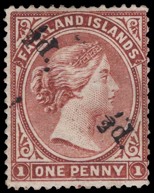 FALKLAND ISLANDS, 1891, ½p ON HALF OF 1p RED BROWN - REVERSED WMK SIDEWAYS IN UNSEVERED PAIR - MINT, 19d var., fresh color with large part o.g., h.r., fine-very fine, ex. Prappas, with 1964 RPS cert., unsevered pairs very rare, especially with the reversed watermark, unpriced as such in the catalogs, cat. $4,000.00, Gibbons #13a var. @ £4,250.00 as a normal pair, exhibition piece (Image)