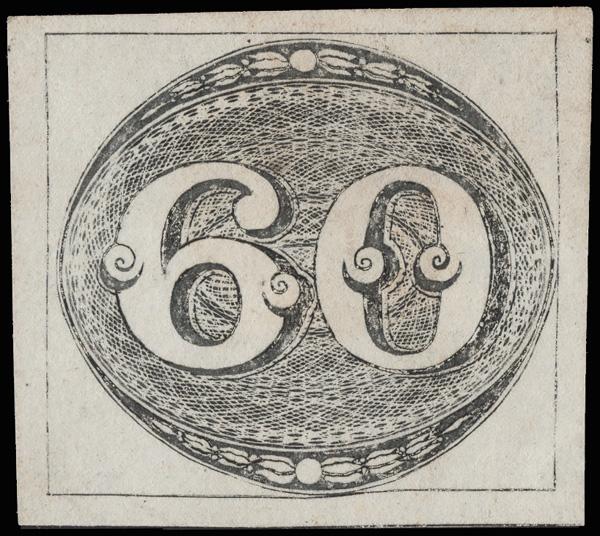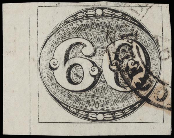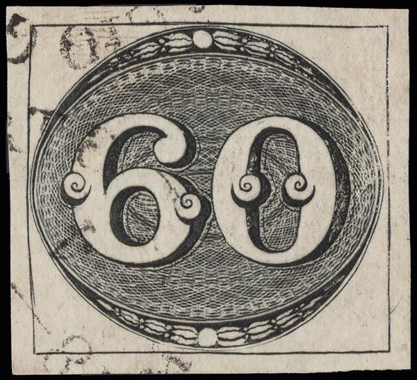 1843, First Issue ("Bull's Eye"), 60r black, worn impression (Scott 2b), ample to oversize margins including a sheet margin at the left; fresh and neatly canceled, Very Fine to Extremely Fine. Scott $250. (Image)