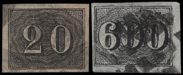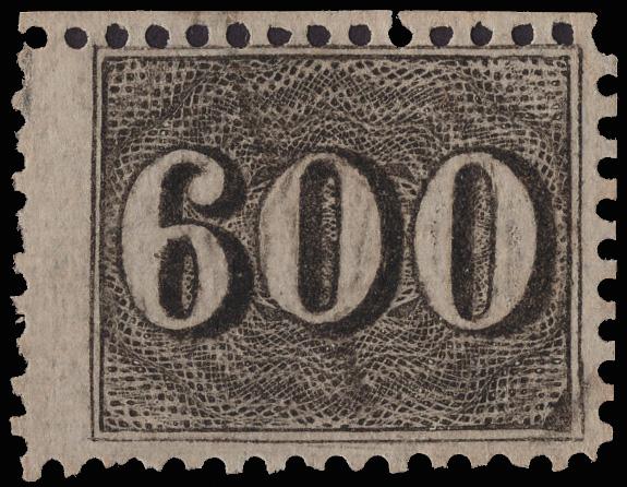 1850, Numeral Issue, imperf, 600r black (Scott 28), unused without gum (as listed), exceptionally fresh, Fine to Very Fine. Scott $500. (Image)