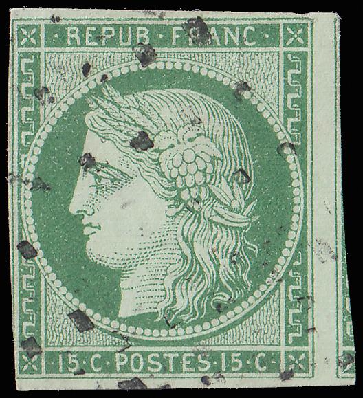 1870, Bordeaux, 30c brown on yellowish (Scott 46), "Paris - 20/ Bd St Germain" c.d.s., Oct 24, 1890 - very late usage, large margins except a little close at the upper left, Very Fine. Yvert 47; €750 for a c.d.s. ($810). Scott $200. (Image)