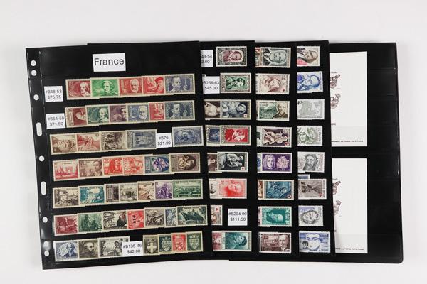 France, Fresh Semi Postal collection 1936-1990, 413 different French semi postal MHN in complete sets; items range from #B48//B614 and include B48-B53, B54-B59, B249-254, B285-290, and B294-B299: some modern proofs are included but not priced;CV $1,176, Fine to Very Fine. Shipping charges apply - weight 0.6 lbs. (PDF for this Lot) (Image)