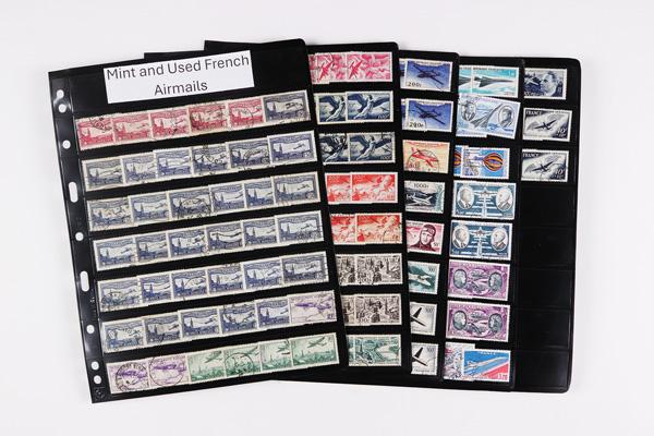 France, Elegant Airmail 1930-1984, Mixed mint and postally used collection of Airmail stamps from France on black stock pages; items range from #C5//C56 and CB1//CB3; nearly 400 stamps with a CV of $940, Fine to Very Fine. Shipping charges apply - weight 0.6 lbs. (PDF for this Lot) (Image)