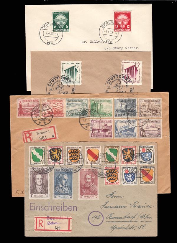 Assortment of 13 Covers, 1937-49, mostly Third Reich including FDCs of 490-491, B107-115 (slight faults), B138-139, B140, 5N41, and plain covers of B141-143 & 4N1-13; any with Special cancels, Fine to Very Fine. Michel €1,940 ($2,100). (Image)