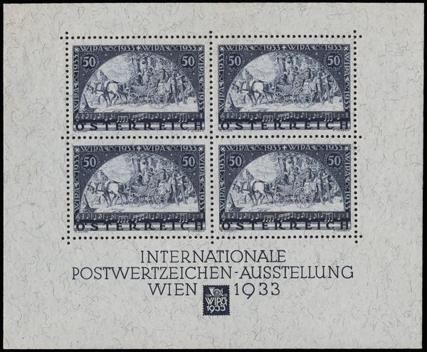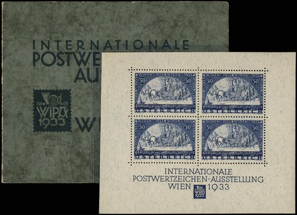 1933, WIPA souvenir sheet of 4 (Scott B111), o.g., lightly hinged, pristine and sound, accompanied by WIPA folder, Very Fine. Michel Block 1. Scott $2,500. (Image)