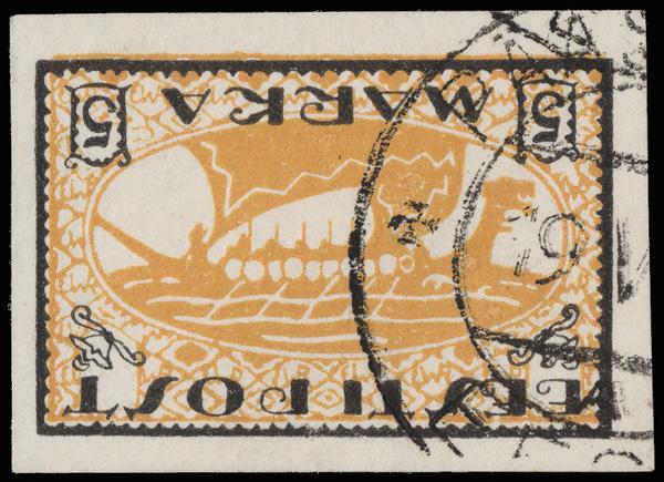 1919, 5m Viking Ship, center inverted (Scott 35 var.), fresh and neatly canceled with large margins, Very Fine. Michel 13xKF. Michel €1,500 for mint ($1,620). (Image)