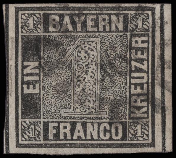 1843, First Issue ("Bull's Eye"), 30r black, intermediate impression (Scott 1a), bright, fresh and neatly canceled with ample to oversize margins, Very Fine+, with a 2024 P.F. certificate. Scott $525. (Image)