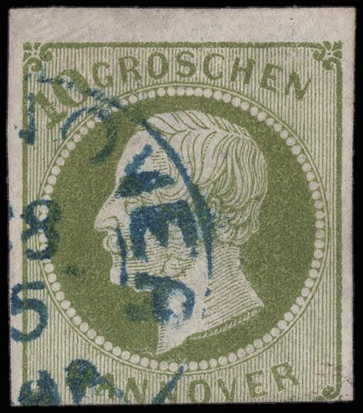 1859 Provisional Govt., two 20c deep blue and a 20c thick "0" in "20" (Scott 14a (2), 14b), all with large to oversize margins, one of the two "normal" and the thick "0" unused without gum, the other normal used, Very Fine to Extremely Fine, the two unused stamps are signed A. Brun. Sassone 15. Scott $865. (Image)