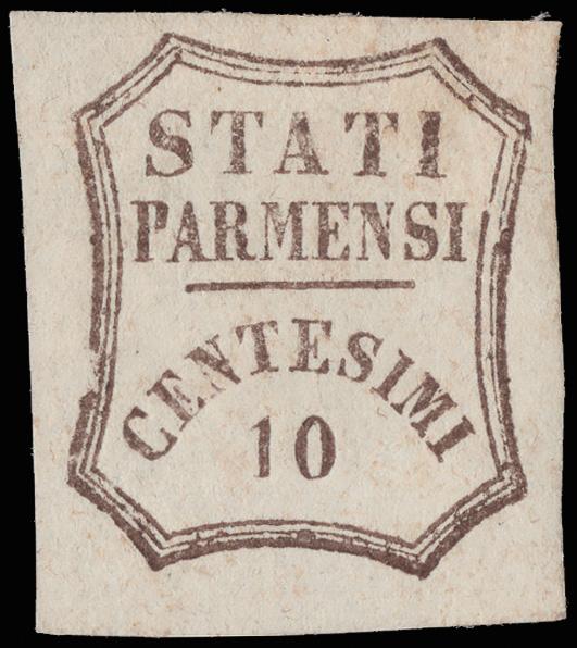 1859 Provisional Govt. 10c brown (Scott 13), o.g., lightly hinged, uncommonly fresh with large margins, Very Fine to Extremely Fine, signed A. Brun, with a 2024 P.F. certificate. Sassone 14. Scott $1,000. (Image)