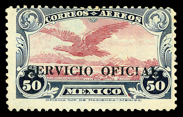 1932, "Servicio Oficial" overprint on 50c dark blue & claret (Scott CO18), o.g., lightly hinged, fresh with crisp colors on bright paper, Fine, signed Ruidiaz twice, with 1975 A.P.S. certificate. Scott $1,000. (Image)