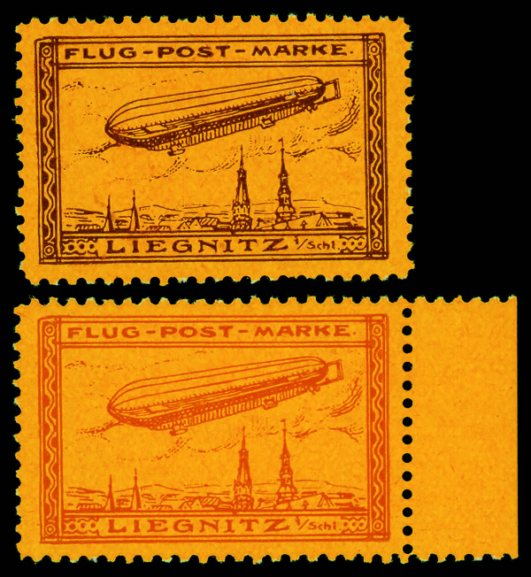 1913, Leignitz Zeppelin Flight, brown on orange & reddish brown on orange (Michel 11a-11b), set of 2, o.g., never hinged, Extremely Fine, signed. Michel €3,000 ($3,240). (Image)